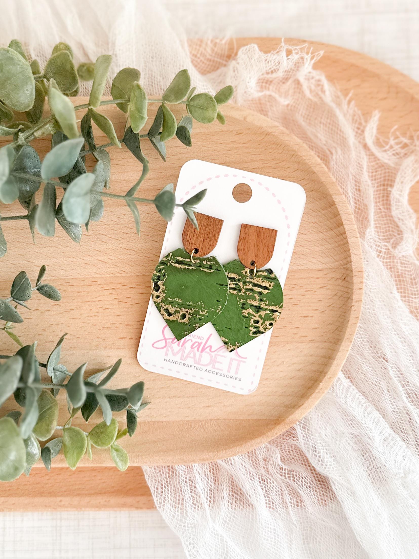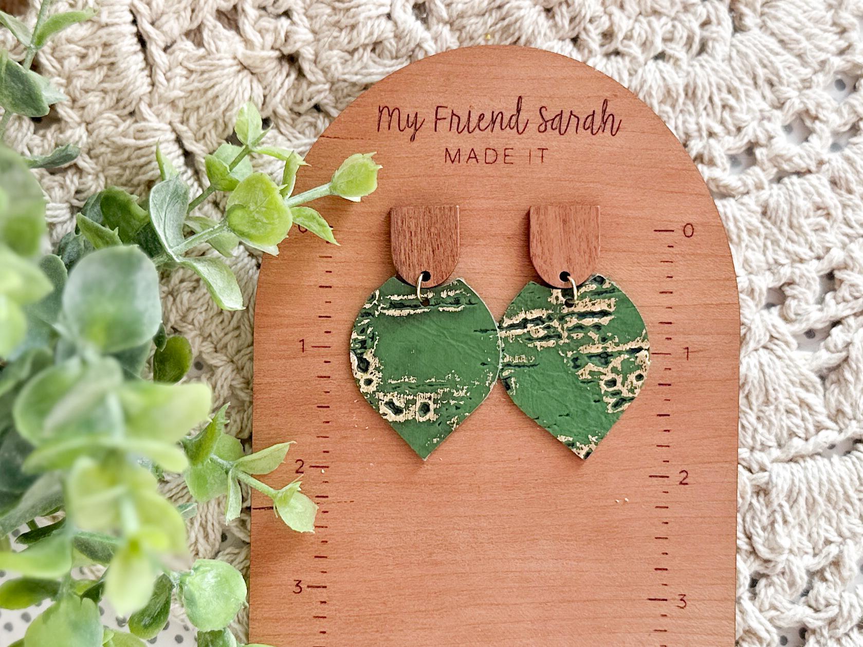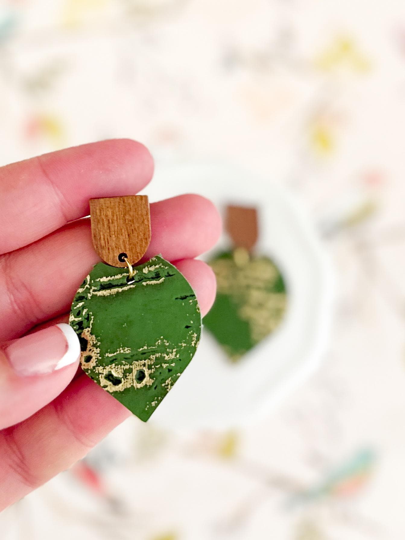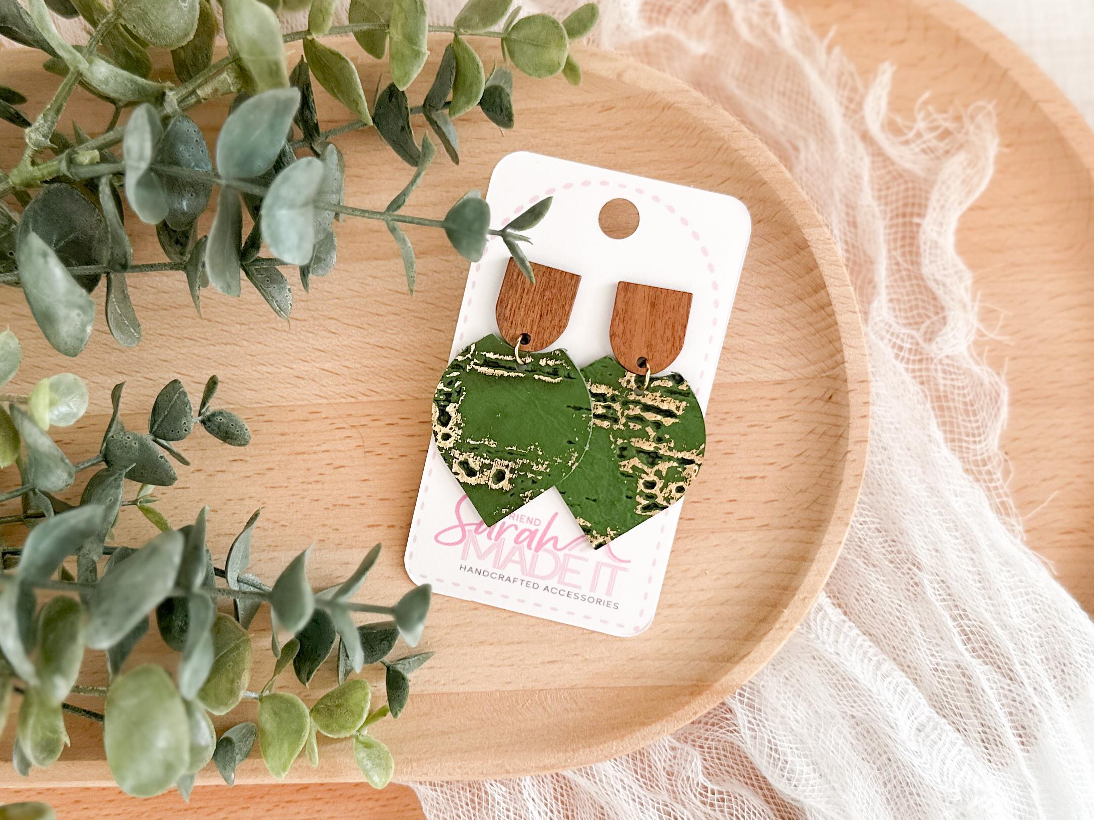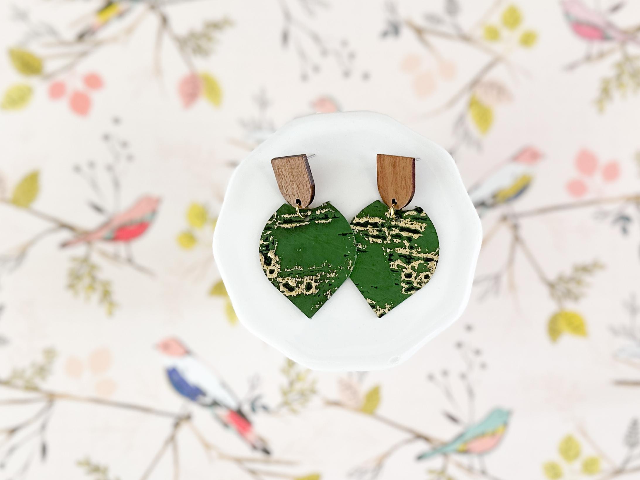 These pointed petal dangles pair natural wood with rich green cork on leather, finished with subtle gold accents for just the right amount of shine. Lightweight and easy to style, they work beautifully for spring outfits, fall layers, or anytime youβre craving a grounded, nature-inspired statement