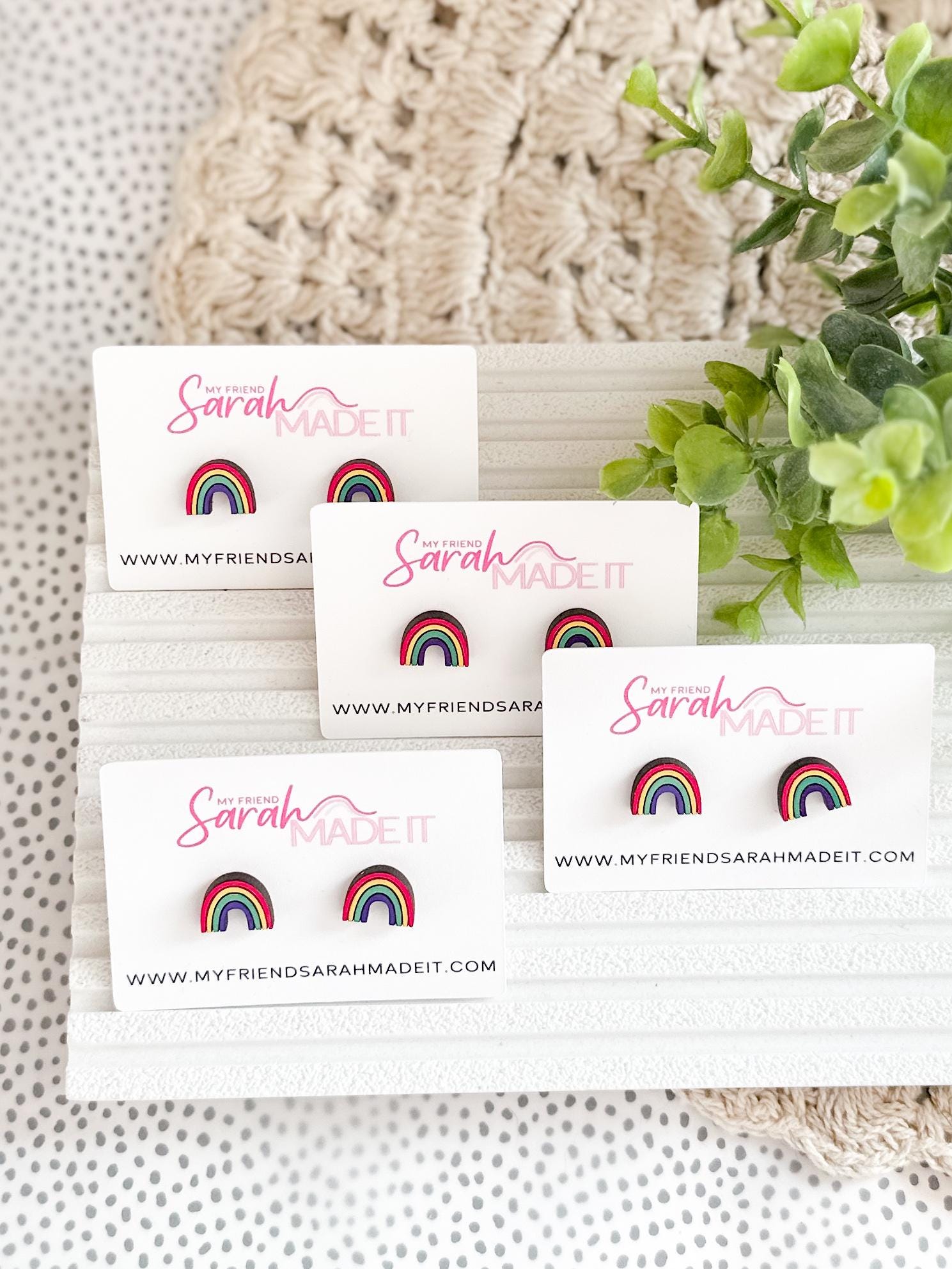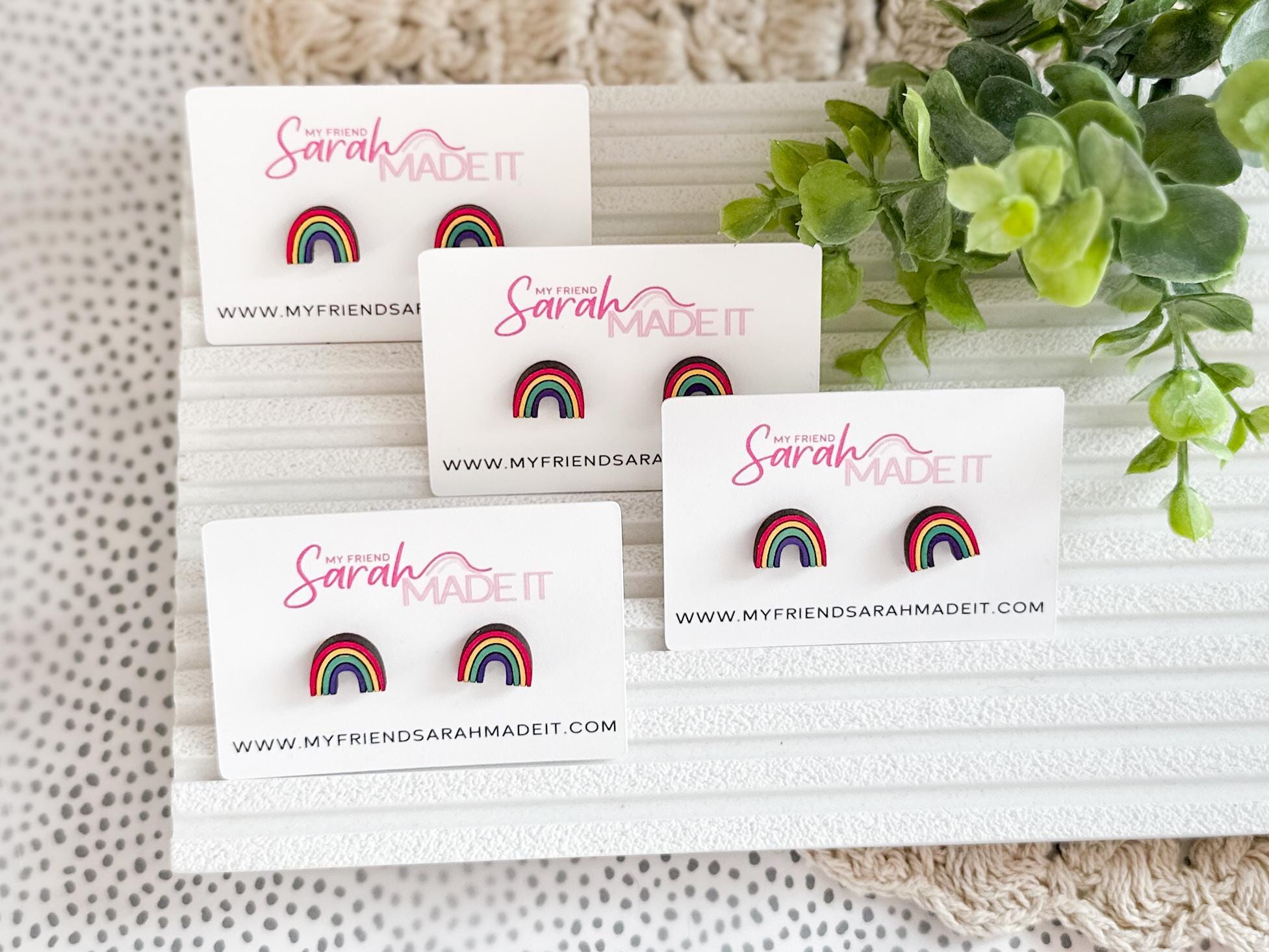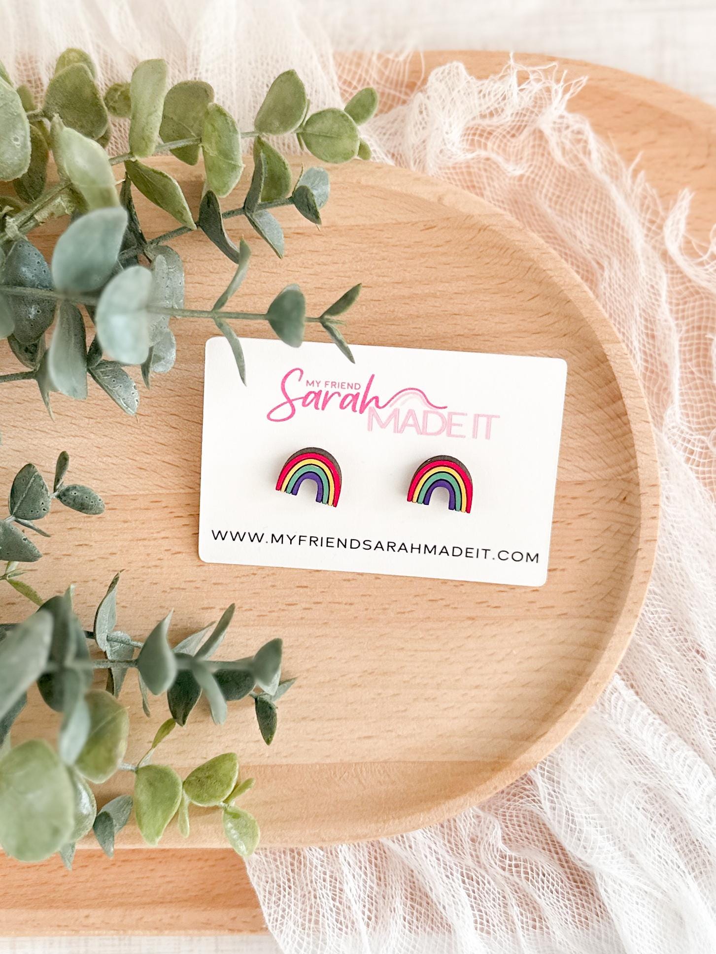These tiny rainbow studs are laser cut from wood and hand painted in my home studio for a bright, cheerful pop of color. Lightweight and full of personality, theyβre perfect for adding a little happy to your everyday look. Sweet for St. Patrickβs Day, adorable year-round.