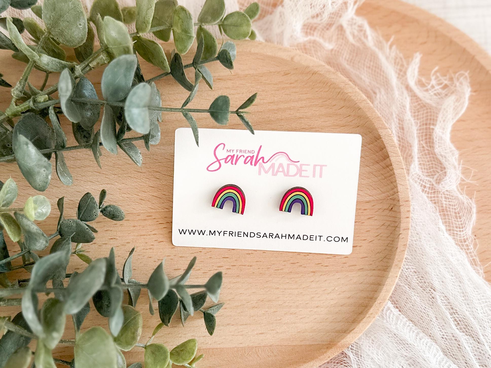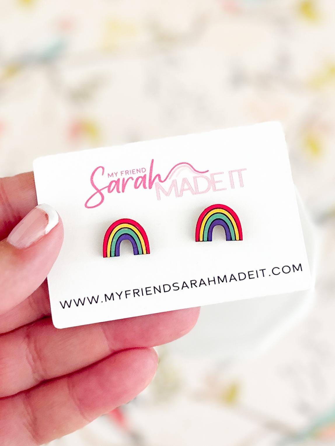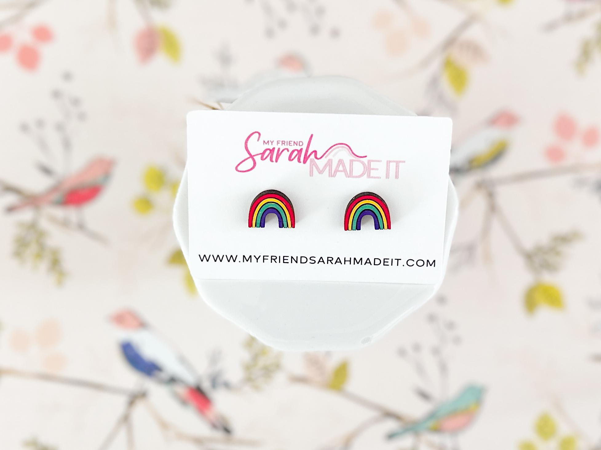 These tiny rainbow studs are laser cut from wood and hand painted in my home studio for a bright, cheerful pop of color. Lightweight and full of personality, theyβre perfect for adding a little happy to your everyday look. Sweet for St. Patrickβs Day, adorable year-round.
