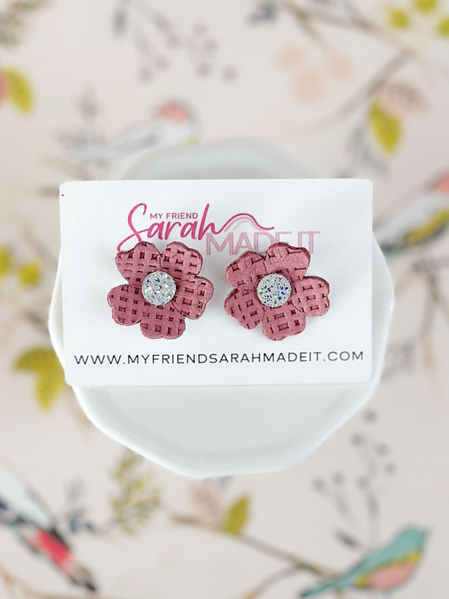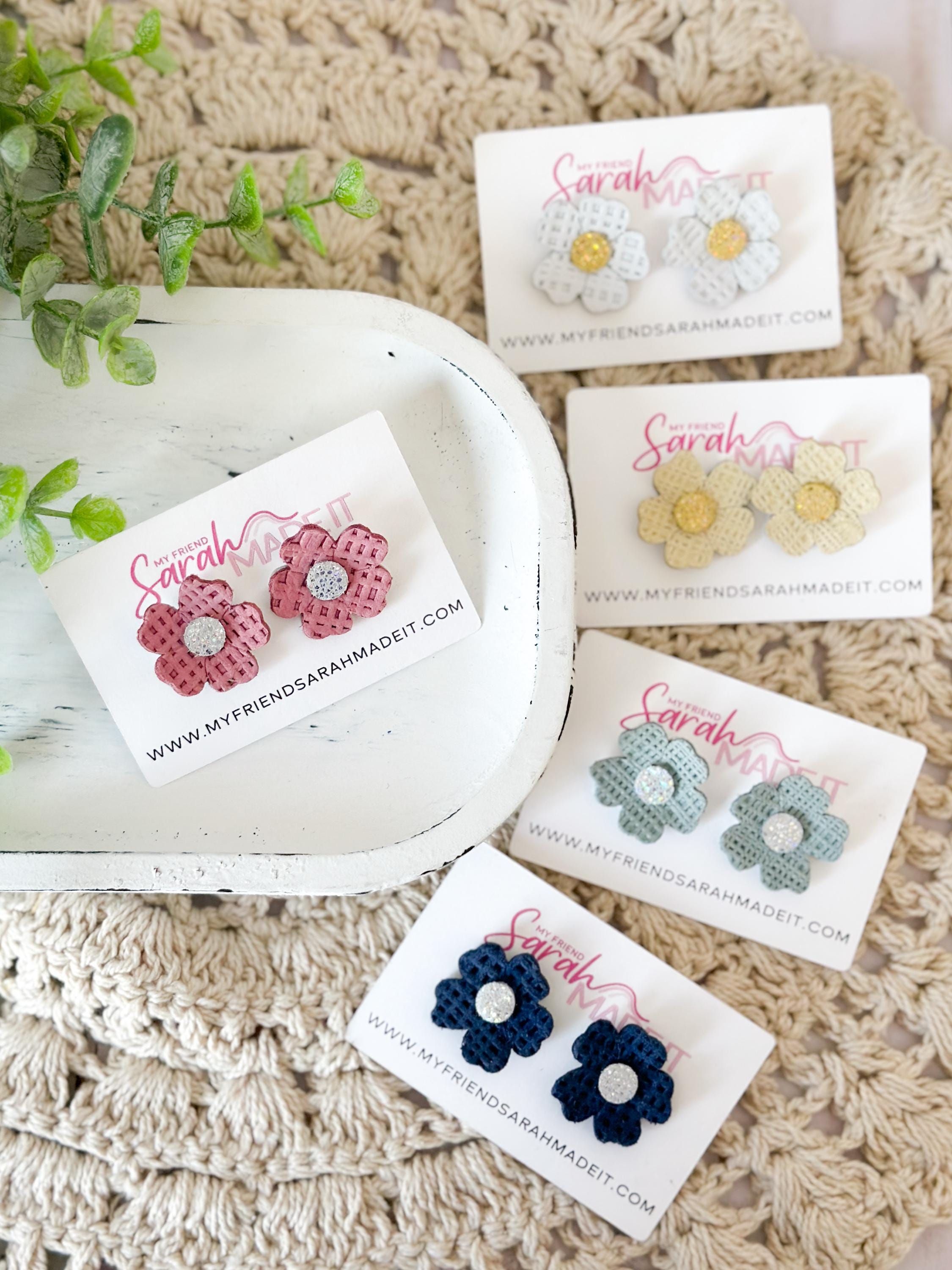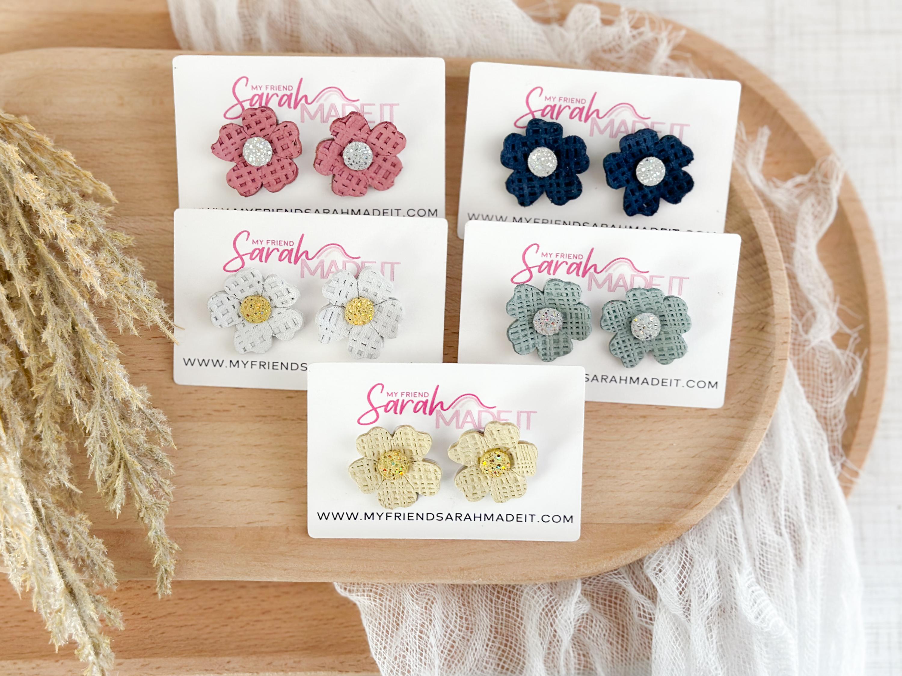 These oversized flower stud earrings are made from genuine embossed leather, adding soft texture and dimension in a lightweight, easy-to-wear design. At approximately 1 inch, they make a statement without feeling heavy.