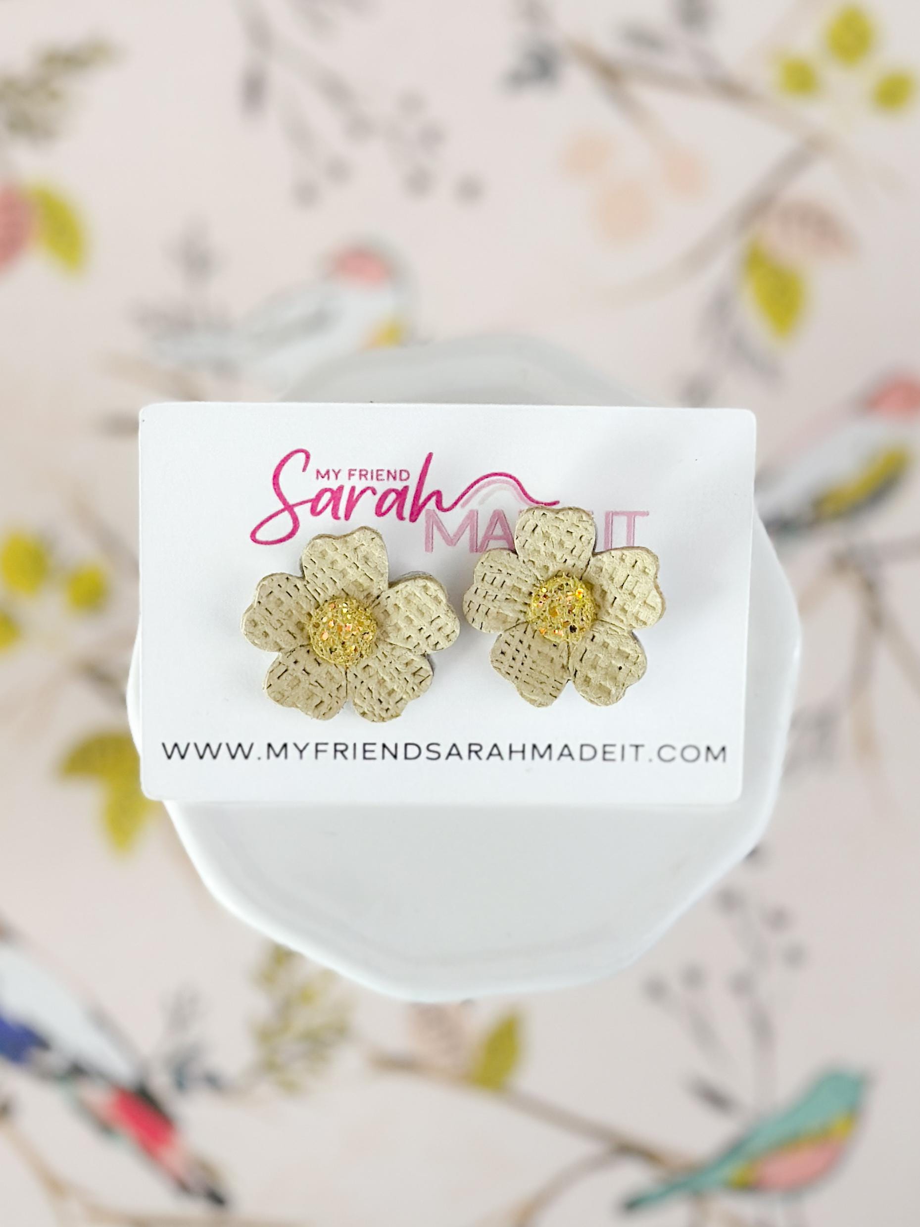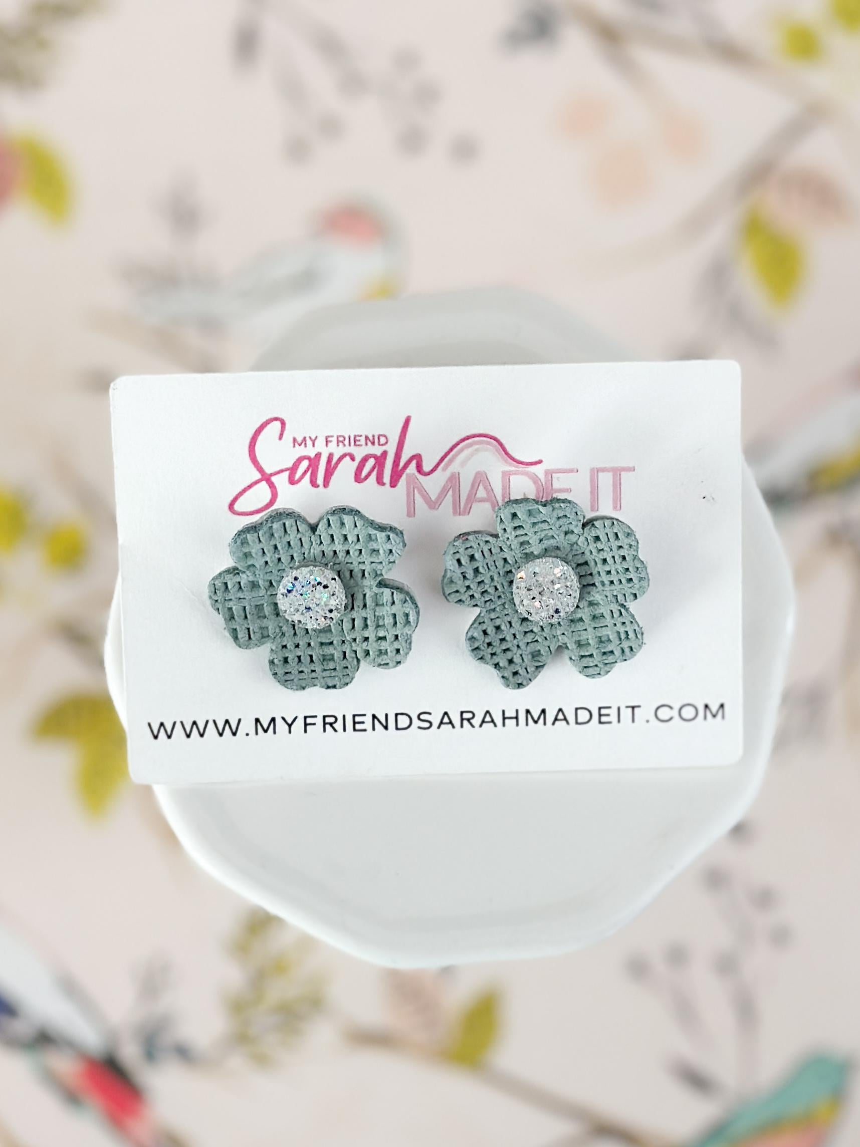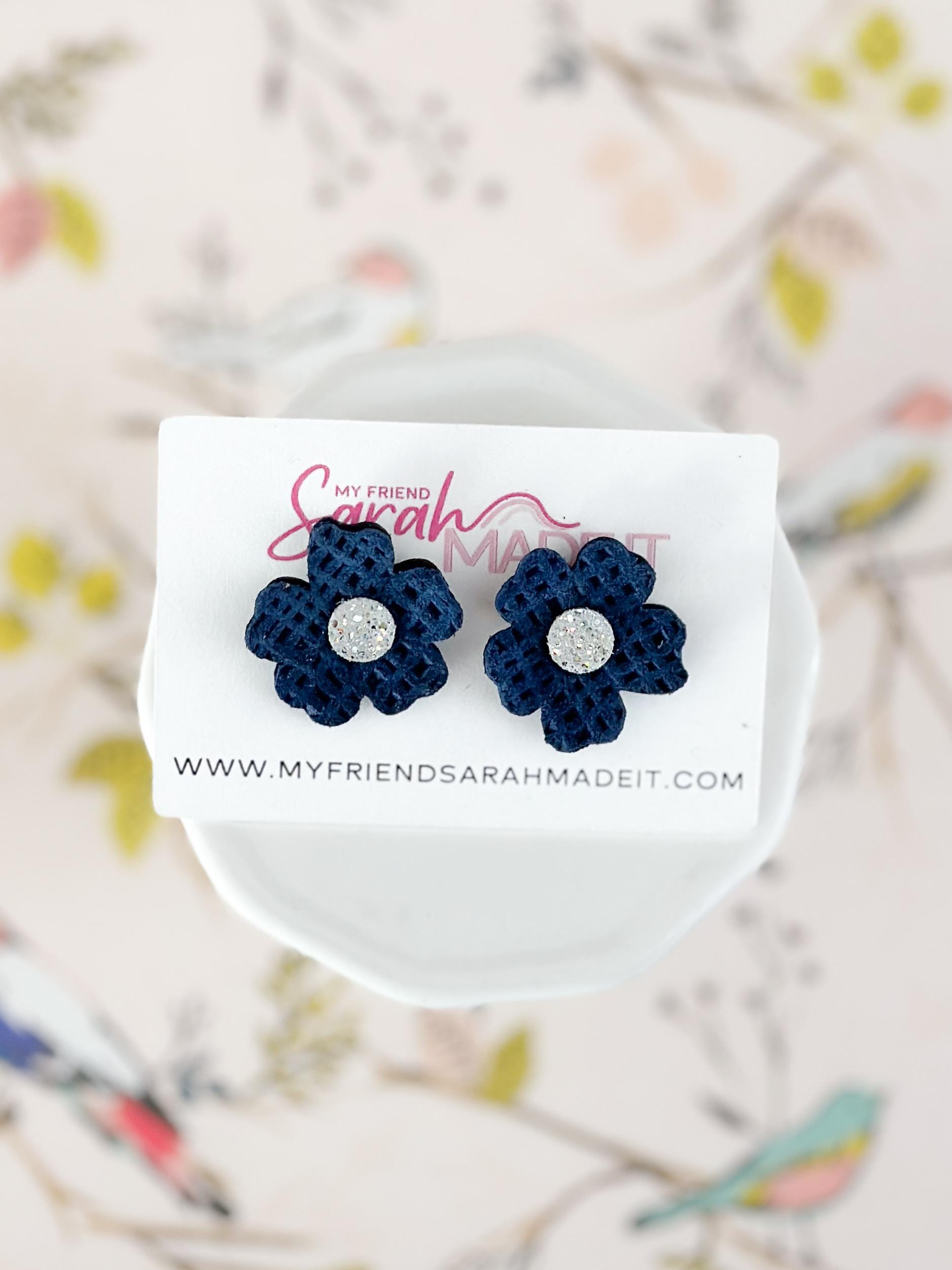 These oversized flower stud earrings are made from genuine embossed leather, adding soft texture and dimension in a lightweight, easy-to-wear design. At approximately 1 inch, they make a statement without feeling heavy.